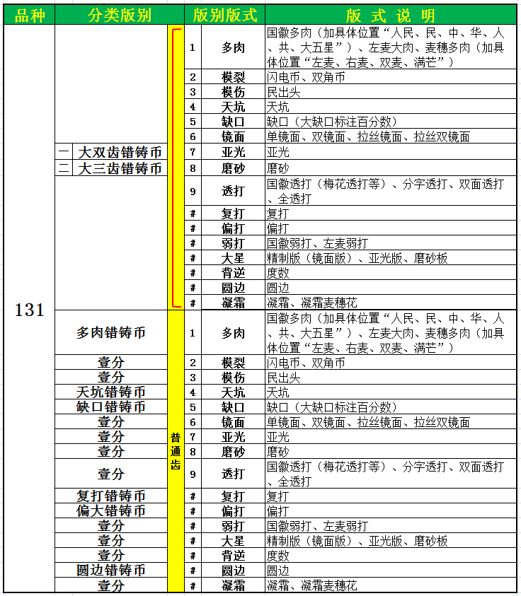 131大雙齒收藏家協會發布大雙齒大三齒錯幣版別標準及分類版式