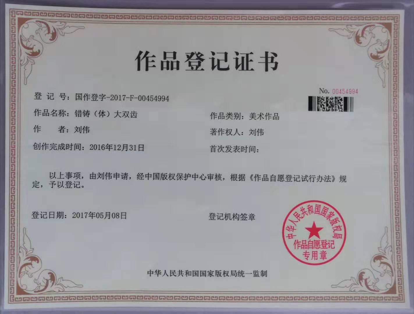 131大雙齒、大三齒錯鑄幣或許是大雙齒幣、大三齒幣版別幣,不管是你、我、他還是官方、銀行部門、造幣廠,不論承不承認它(大雙齒)就在那里,客觀存在的現實,不論是無意失誤造成的雙齒錯幣,還是有意為之,專門設計雙齒邊齒和雙齒新工藝的試驗而作的試驗幣,我們老百姓是不得而知,只有看到如此漂亮的大雙齒幣、大三齒幣,而且雙齒設計復雜,大雙齒有頭有尾,有由淺入深的雙齒圓頭,有逐漸分叉似燕子尾巴的漂亮燕尾,雙齒長度圓周角在135度到180度,范圍之大,“小批量、標準化、范圍大、一眼請”,真是巧奪天工,觀賞性比直絲齒強多了,壹分硬幣邊齒那么小,還加工工藝如此復雜精妙,大大爭強了分幣整體美觀性和邊齒的防偽功能。