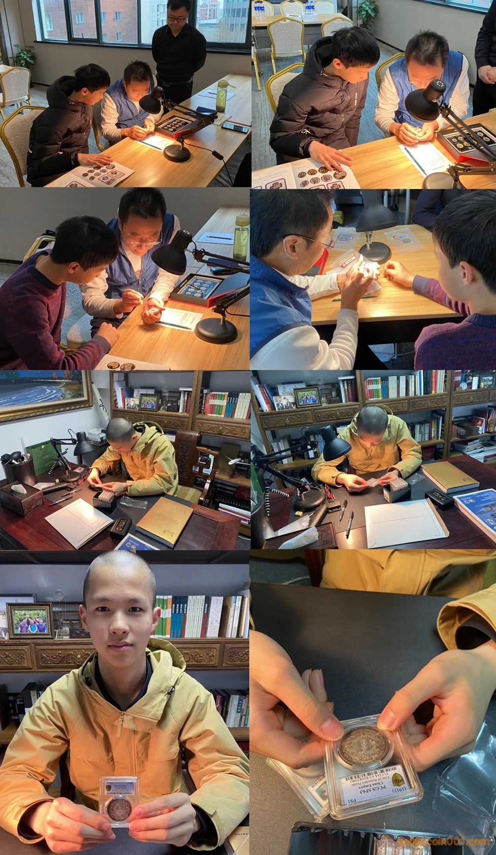 五月,在現代錢幣網孫老師辦公室中看幣,機制幣很貴的品種——長須龍等精品。以及孫老師指導我看幣的照片。到了網站,發現網站的工作人員真的好忙,但大家看到我們來了都起身迎接我們,我們很感動,王叔叔還給我和我爸爸拿了兩瓶可樂,楊姐姐和一個阿姨熱切的帶我們去孫老師辦公室,顧叔叔和郭叔叔本來在忙自己的事,看到我們離開都放下事情來送我們。感覺他們都很和藹,他們的北京口音讓我感覺特別親切,很多網站人員都給我的文章點贊,謝謝大家。現在月拍的拍品都有600多項,跟以前的大拍差不多了,他們每天要一項一項拍照,還要手動輸入商品內容,任務量特別大,接受拍品時拆快遞就拆了一個多小時,很多人周六周日都要加班,記得有一次王版凌晨12點半回復我消息,我回復時看到時間都嚇了一跳,他們都特別辛苦。所以請大家多多理解網站的工作人員,他們真的很辛苦,謝謝大家。