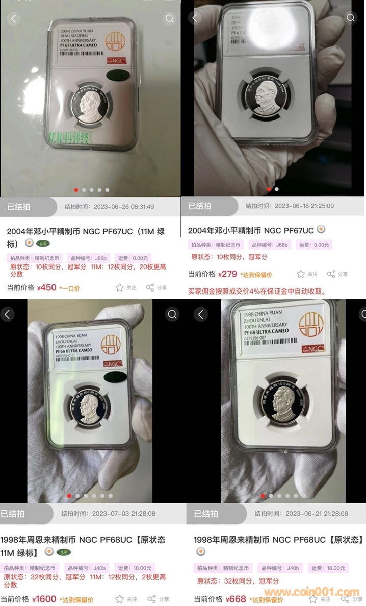 筆者認為同一枚幣,原狀態貼再評級標的幣相比原狀態標的幣再相比養護幣更有投資和收藏潛力。養護幣的價格不如原狀態幣的價格,最關鍵的是大家一般更喜歡原汁原味的幣。我是從小銅章開始收藏的,小銅章的原封相比幣更多。如果我們有同樣的兩枚章,我和我父親在有一枚原封的基礎上才會拆一枚原封去評級。所以我們一直都很注重原狀態的幣章,自從NGC為現代網推出原狀態評級標簽之后,我就送了不少原封的章,例如《曹雪芹》《法門寺》。數據表明——是原狀態的幣但是沒有打原狀態標簽的69分朱鹮的價格為1300多,而有了原狀態標簽的朱鹮拍到了2000多,可見大家對于原狀態的標簽的喜愛,也可見帶現代網原狀態標與原狀態不帶標的相對的議價空間之大。以往大家購買再評級貼標幣的原因一般原因為無養護,現在有了原狀態標,送評再評級的人可能會少一些。但是,原狀態標幣再貼上再評級標的議價空間更大。此時購買原狀態貼再評級標的意義就真正為購買同等分數之間品相較好或這枚幣低評的現象。所以在這時貼再評級標就更有意義,相比原狀態不貼再評級標更有議價空間。現代網上拍一枚周總理,68分原狀態標只有600多,而68分11M標價格到了1500多。之前現代網原狀態的幣只能在網站拍賣時顯示或在網站中查詢,在現實交易時不方便,PCGS為現代網推出的標簽只對現代網單方面負責,PCGS并不承認原狀態標簽,所以我對此有所顧慮,基本上并未送評也并未購買任何品種的現代網原狀態的幣和章,但自從NGC與現代網聯合推出原狀態標簽并且NGC單獨紀錄評級數量之后,我的顧慮就煙消云散,我送評原狀態一大批原封或大開門的藏品,因為我終于能夠全身心的投入原狀態當中了,我也送評并購買了一些帶有原狀態標的好幣好章,本人認為,現代網原狀態的幣或章在將來一定有很大的升值潛力。下圖是朱鹮帶原狀態標與原狀態不帶標的價格對比圖,同品種同分數原狀態貼再評級標與原狀態未貼再評級標價格對比圖,一些原封章的圖片以及本人送評并購買的原狀態的藏品。