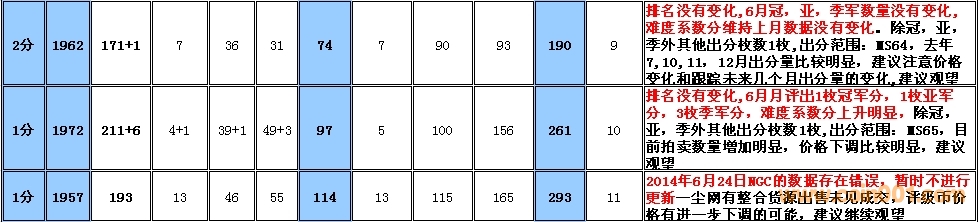 http://m.2ndbux.com/read.php?tid=49949 數(shù)據(jù)采集NGC硬幣評(píng)級(jí)分?jǐn)?shù)分布表 (2014年6月24日)