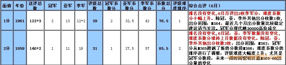 難度系數(shù)是動(dòng)態(tài)的,評(píng)級(jí)量上升不管他是冠軍還是亞軍難度系數(shù)的分?jǐn)?shù)一定會(huì)提高,總量上升是必然的,關(guān)鍵是看各個(gè)分?jǐn)?shù)段有沒(méi)有上升(尤其是高分段)有時(shí)低分多不一定是壞事反而能襯托高分的稀缺性。如果某些品種的評(píng)級(jí)已經(jīng)接近飽和那他的難度系數(shù)分?jǐn)?shù)就不會(huì)上升隨著時(shí)間的推移他的價(jià)值同樣能體現(xiàn)出來(lái)!如果現(xiàn)在價(jià)格合適的話對(duì)于您來(lái)說(shuō)的那個(gè)品種也許是最佳的買入時(shí)機(jī)。