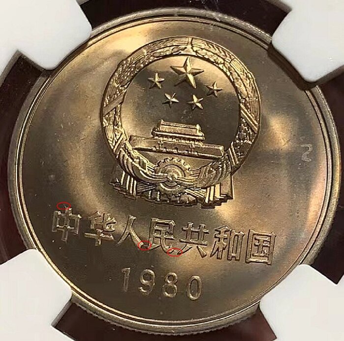 這時候我們就可以推斷,這個幣的坯餅金屬沒有經(jīng)過消除內(nèi)應(yīng)力。正是這四道深割痕的出現(xiàn),導(dǎo)致金屬壁厚不均勻,從而產(chǎn)生金屬內(nèi)應(yīng)力危害。會使這個坯餅受傷位置翹起、底部開裂、變脆。