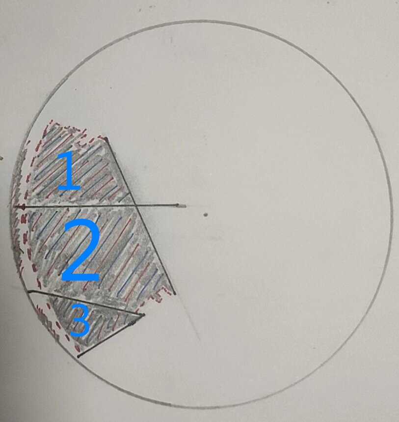當該坯餅進入沖壓機成型的時候,該位置附近受模具壓得深的位置(下圖紅色虛線)與原受傷深痕形成幾何圖案閉合(共三塊:上面兩塊,下面三角形)。再由于本身該位置已經(jīng)翹起、底部開裂、變脆,所以就會整塊整塊脫落,另外清邊也會部分脫落。(下圖陰影部分就是脫落部分,完全與該幣吻合)