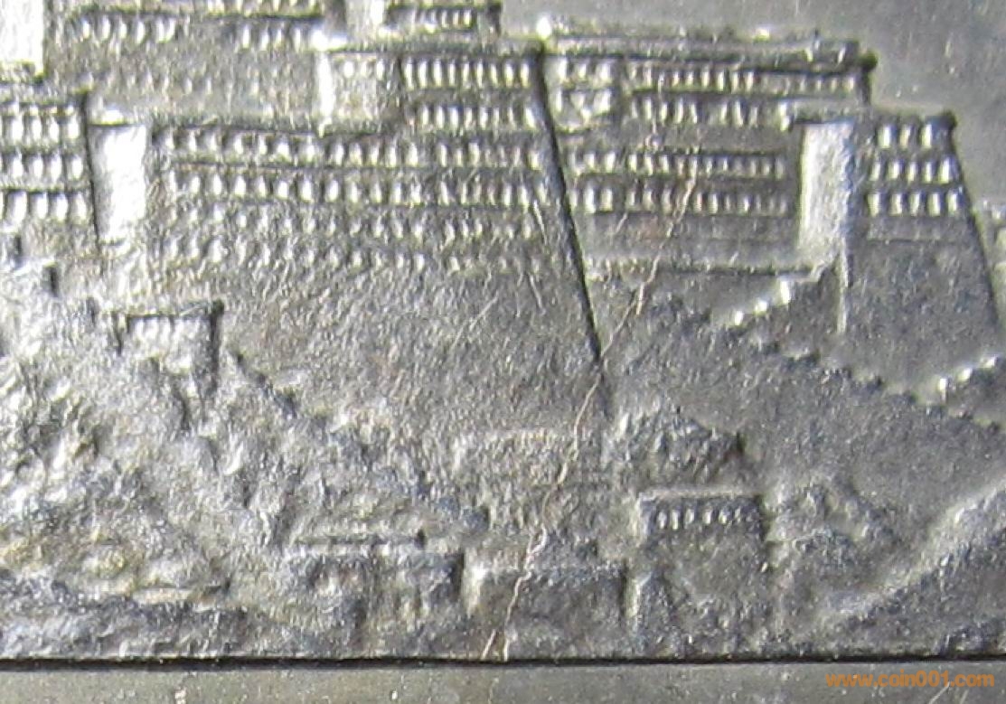1、老西藏幣普制版都存在“成”字一撇“雙缺口”,并伴有折勾“重影”的特征。就是說N多的工作壓印模具上早已形成了“雙缺口”和“重影”的特征。從而推斷至少在翻壓印模(工作模具)的二原模上就已經形成了“雙缺”和“重影”的特征,或這兩個“缺口”特征并非一次成型;