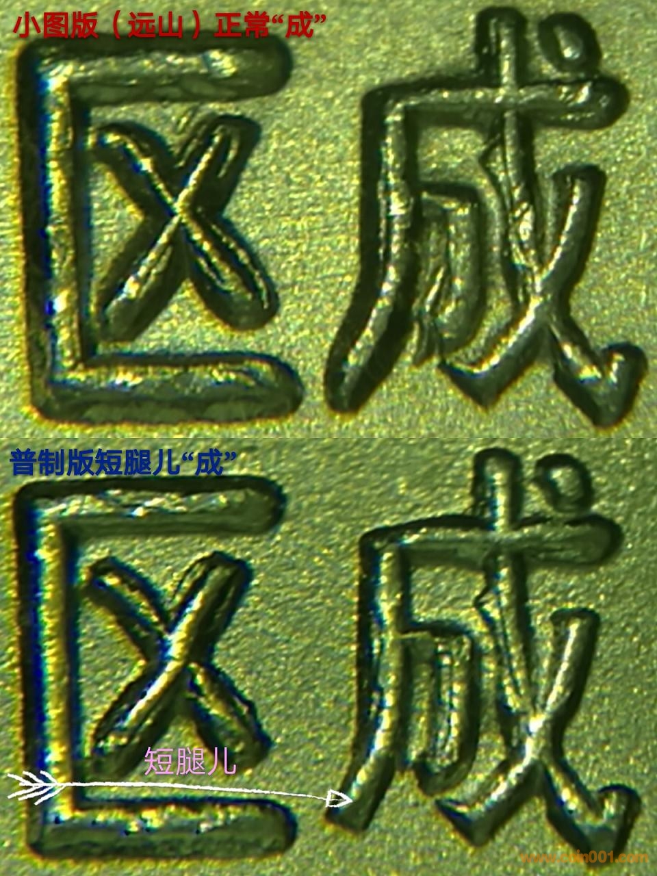 我不知道你說的組合模具到底是什么意思。從造幣工藝上來說,很多情況下油土模上都只有基本圖案。文字、珠圈、年份、數字、星形、廠標等等次要成分是通過手工后加在石膏模或其后的模具上的。否則熊貓金幣同一年 5 種不同重量的幣得做 5 個油土模才行,因為上面有不同的重量標示。沒有聽說過要為這些成分另外再做模具來沖壓到主要模具上。