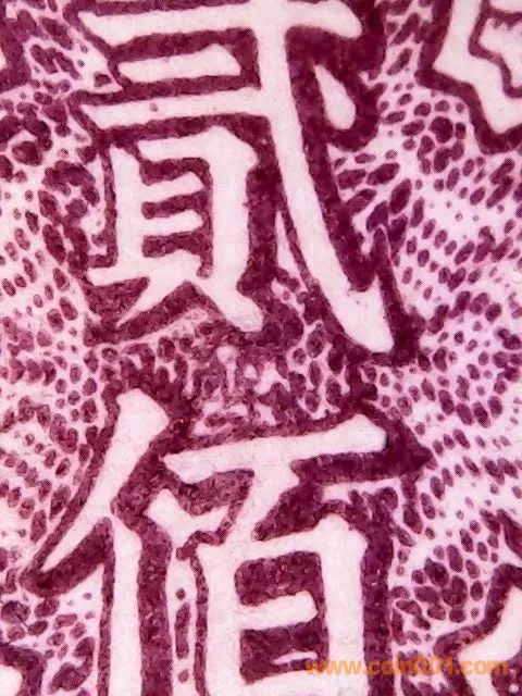 引用 引用第85樓xiangyi800于2018-11-14 18:29發(fā)表的 :關(guān)于新中國人民幣上的暗記,紙幣最早應(yīng)該屬1949年5月發(fā)行的第一套人民幣排云殿200元。此鈔由東北銀行印刷廠印刷,該鈔的暗記十分特別,也極具有歷史意義,和當(dāng)時的時代背景完全吻合。請泉友們也請您在下圖中細(xì)心找找并“猜猜”都是些什么字? [attachment=352359].......