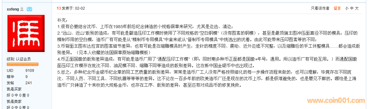 馮先生近期發表的帖子有關《上海造幣廠造幣技術資料》