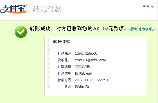 轉(zhuǎn)賬結(jié)果轉(zhuǎn)賬交易成功 交易時(shí)間:2012年12月04日 12:59:54 網(wǎng)銀流水號(hào):02012120412597542409