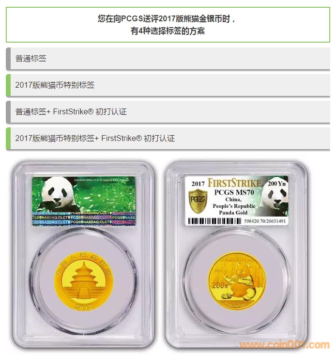 若您選特別標簽或First Strike? 初打認證,需要在送評表上注明選擇哪一款標簽,例如標注“2017版熊貓幣特別標簽+ First Strike? 初打認證”。