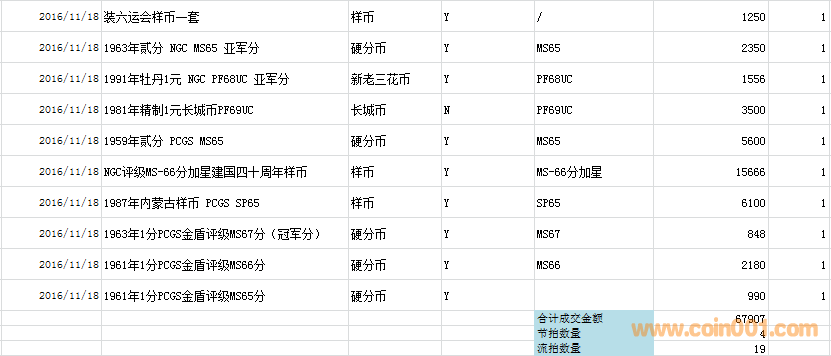 在總共節(jié)拍的23項(xiàng)拍品中,評(píng)級(jí)幣占到了17項(xiàng),占總金額74%,評(píng)級(jí)幣占據(jù)10月精品拍賣的主導(dǎo)地位。以下是詳細(xì)的成交統(tǒng)計(jì):