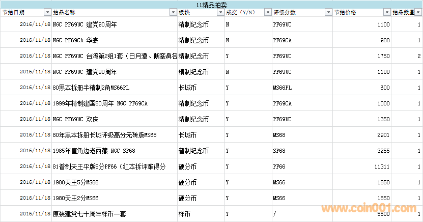 現(xiàn)代錢幣網(wǎng)11月精品拍賣行情綜述現(xiàn)代現(xiàn)代錢幣網(wǎng)11月精品拍賣在2016-11-18晚上21:00正式開始,拍品主要涵蓋精制紀(jì)念幣、硬分幣、長城幣、新老三花幣、普制紀(jì)念幣、樣幣6個(gè)板塊,本次精品拍賣一個(gè)有23項(xiàng)拍品上拍,最終成交19項(xiàng),成交率83%,成交總金額67907元成交?;仡櫿麍鼍放馁u雖然上拍數(shù)量有所減少,但是拍賣的競價(jià)過程依舊非常激烈!此次拍賣的重點(diǎn)為硬分幣板塊,成交總金額26979元,占成交總額的40%,其次樣幣板塊。硬分幣的重頭戲是81普制天王平版5分PF66,普制天王出現(xiàn)在1981年紅本套裝,市場比較少見,同時(shí)1981年紅本套裝在現(xiàn)代錢幣網(wǎng)2016年11月8日舉行的秋季大拍創(chuàng)出了26780元的歷史新高(拍賣連接:http://m.2ndbux.com/hack.php?H_name=bigauction&action=detail&aid=200),因此拍賣伊始就收到眾多藏家的積極關(guān)注,拍賣價(jià)格出現(xiàn)了快速的上升,經(jīng)過多輪競價(jià)最終以11311元成交,成交價(jià)格出現(xiàn)驚人的40%以上的漲幅,令人為之振奮!同時(shí)上拍的2枚MS66天王分幣1980年5分和1980年2分也表現(xiàn)出了較高的市場熱情,最終以1850元相同的價(jià)格成交,2枚天王分幣的成交價(jià)格創(chuàng)出了近期的新高,火熱的成交令市場對(duì)于天王分幣的熱情再次得到有效的激發(fā)。除此以外1959年貳分 PCGS MS65的競拍也非常激烈,最終以5650元的價(jià)格成交,表明大家對(duì)于PCGS早期分幣的認(rèn)可度正在逐步的提升。樣幣板塊有5項(xiàng)拍賣,評(píng)級(jí)建國四十周年MS-66分加星樣幣受到了格外關(guān)注,加星的評(píng)級(jí)幣被認(rèn)為具有卓越品相,令人賞心悅目的視覺效果,拍賣伊始價(jià)格一舉躍上了10000元整數(shù)關(guān)口,最終以15666元成交,評(píng)級(jí)幣加星與沒有加星之間的溢價(jià)達(dá)到了40%以上,表明狀態(tài)好的錢幣依舊成為市場首選的目標(biāo)。