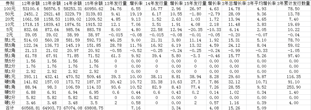 13-15年人民幣發行量小 ..