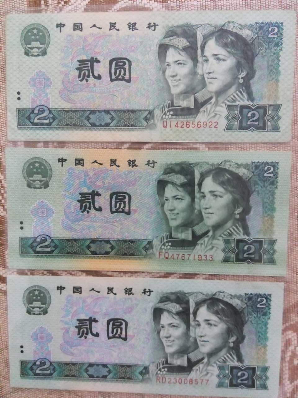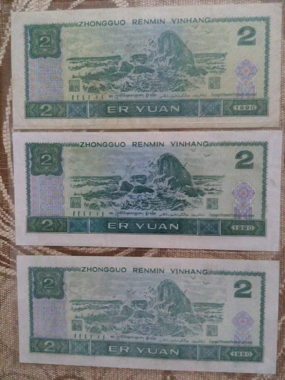 鈔紙紋及顏色不同。如下圖3張90版,第一張與第二、第三張明顯不同,第二、第三張接近80版,但第二張紙質顏色相對比第一、第三少。