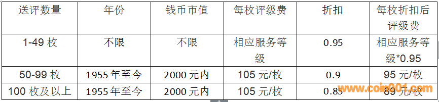 ??????現(xiàn)代硬幣送評(píng)折扣前后收費(fèi)標(biāo)準(zhǔn)