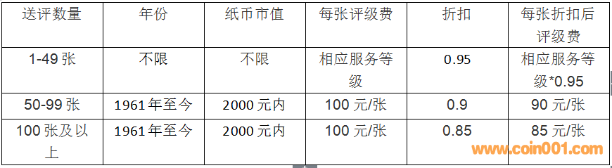 ??????現(xiàn)代紙幣送評(píng)折扣前后收費(fèi)標(biāo)準(zhǔn)