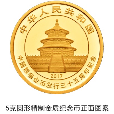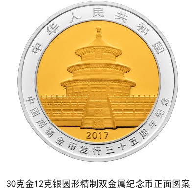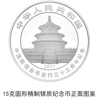中國人民銀行定于2017年6月15日發行中國熊貓金幣發行35周年金銀紀念幣一套。該套紀念幣共3枚,其中金銀雙金屬紀念幣1枚,金質紀念幣1枚,銀質紀念幣1枚,均為中華人民共和國法定貨幣。