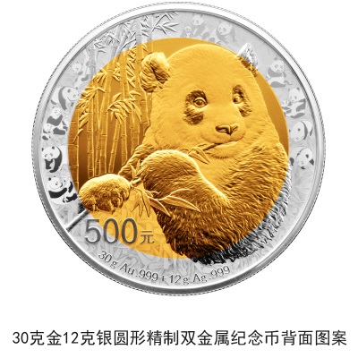 30克金12克銀圓形雙金屬紀念幣為精制幣,含純金30克,含純銀12克,直徑45毫米,面額500元,成色99.9%,最大發行量6000枚。