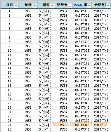 為了滿足藏友同分配套需求,采用優(yōu)先滿足2枚同分評級幣的配套需求,最后剩下采用單枚評級幣的銷售原則,大家可以根據(jù)需求進(jìn)行選擇相匹配的產(chǎn)品和對應(yīng)數(shù)字編號。