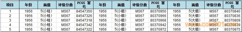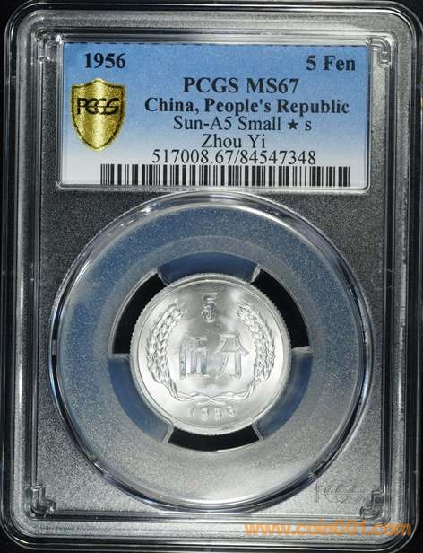 1956年5分(小星粗字)的評級難度非常高,無論是PCGS還是NGC目前所見最高分MS67,主要原因所有的錢幣焦點(diǎn)區(qū)域有發(fā)絲狀的鑄紋,對于評級分?jǐn)?shù)的影響極大,這次送評的錢幣經(jīng)過精心挑選,品質(zhì)屬于批次中狀態(tài)最好的錢幣,值得大家擁有!