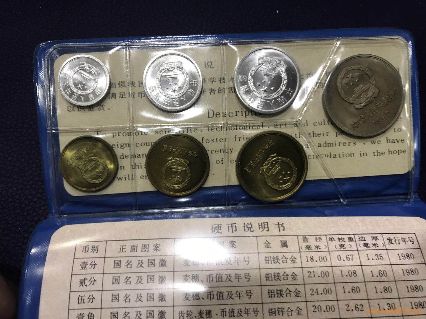 1980年藍本原盒(25本)全新.封皮完整,塑封(裝幣地方)透光度極好,其中16本角幣完好,5本五角有輕微氧化,4本五角有輕微鑄造痕,25本分幣和元幣狀態上佳.狀態基本一樣,無托拍賣,難得收藏和投資精品。有不清楚地方加手機號微信或來電了解,拍賣上圖數量有限,開貼展示!(外盒是原裝但有點舊,可免費增送一個全新外盒) 2017.10.18 精品拍賣等著您出價!發現有托拍,此貨送人,就要看看市場真實價,有不清楚本貼指出,可以上傳圖片!