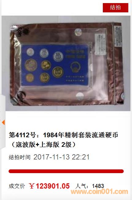 ????本場拍賣寇波版大發神威,第4112號:1984年精制套裝流通硬幣(寇波版+上海版混裝),成為本場又一大亮點,最終