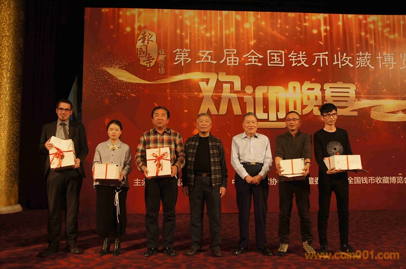 作為博覽會的重頭戲,11月12日晚在“新中國第一宴”舉辦地北京飯店金色大廳的歡迎晚宴,則是將整個博覽會的氣氛推向高潮。歡迎晚宴由徐艦主持,與會的全國錢幣收藏聯盟領導集體上臺,與大家見面,葉濤代表聯盟發言,各位副主席為全國錢幣收藏聯盟各委員會、各地活動中心頒發牌匾。博覽會協辦方代表北京公博古錢幣藝術品鑒定有限公司董事長段洪剛發表了熱情洋溢的講話。而隨后舉行的抽獎活動,更是引爆了整個晚宴。