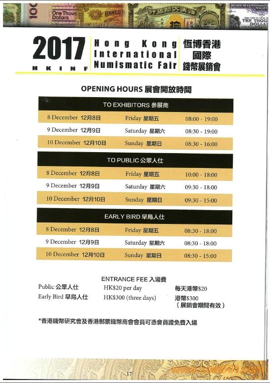 「恒博香港國際錢幣展銷會」即將于2017年12月8-10日舉行