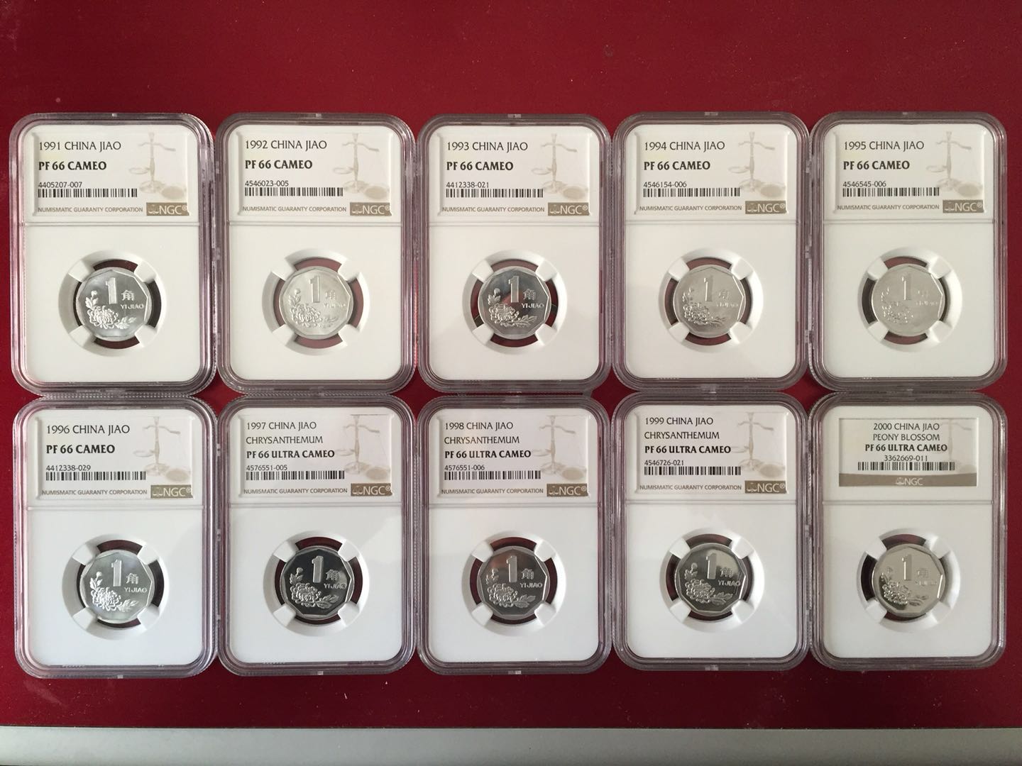 出:NGC PF66(CA\UC)91-00菊花一角精制幣大全套