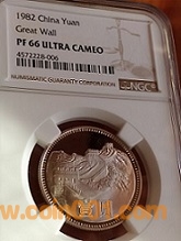 1982精制長(zhǎng)城幣1元