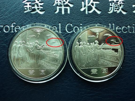《建國35周年》幣是我國發行的第一套流通紀念幣,在新中國錢幣史上具有重要地位。其中“開國大典”這枚幣的背面圖案是根據我國著名畫家董希文先生1952年創作的紅色經典巨幅油畫《開國大典》局部并結合紀念幣的薄浮雕設計特點制作而成的,生動形象地再現了新中國誕生時那激動人心的一刻,成為我國流通紀念幣中“永恒的微笑”。 上海造幣廠和沈陽造幣廠分別鑄造的“開國大典”中Z字型云彩圖案竟然不一樣。打個比方吧,Z字型云彩又像一只水中的鴨子,不一樣的地方就在鴨子嘴巴,上海廠普制版鴨嘴云又粗又長,沈陽廠普制版鴨嘴云又細又短,而沈陽廠制造的精制版跟普制版圖案又不一樣,跟上海廠普制版一樣。市面上沈陽普制版大典多,上海普制版大典少,是由于被發現錯誤而停止生產,這其中的錯誤我猜想就是形成大典發行最少的原因。上海造幣廠精制版本身有天安門柱子錯誤更是雪藏了起來,到前幾年才被發現了幾十套。 沈陽精制版 沈陽普制版 上海普制版 |