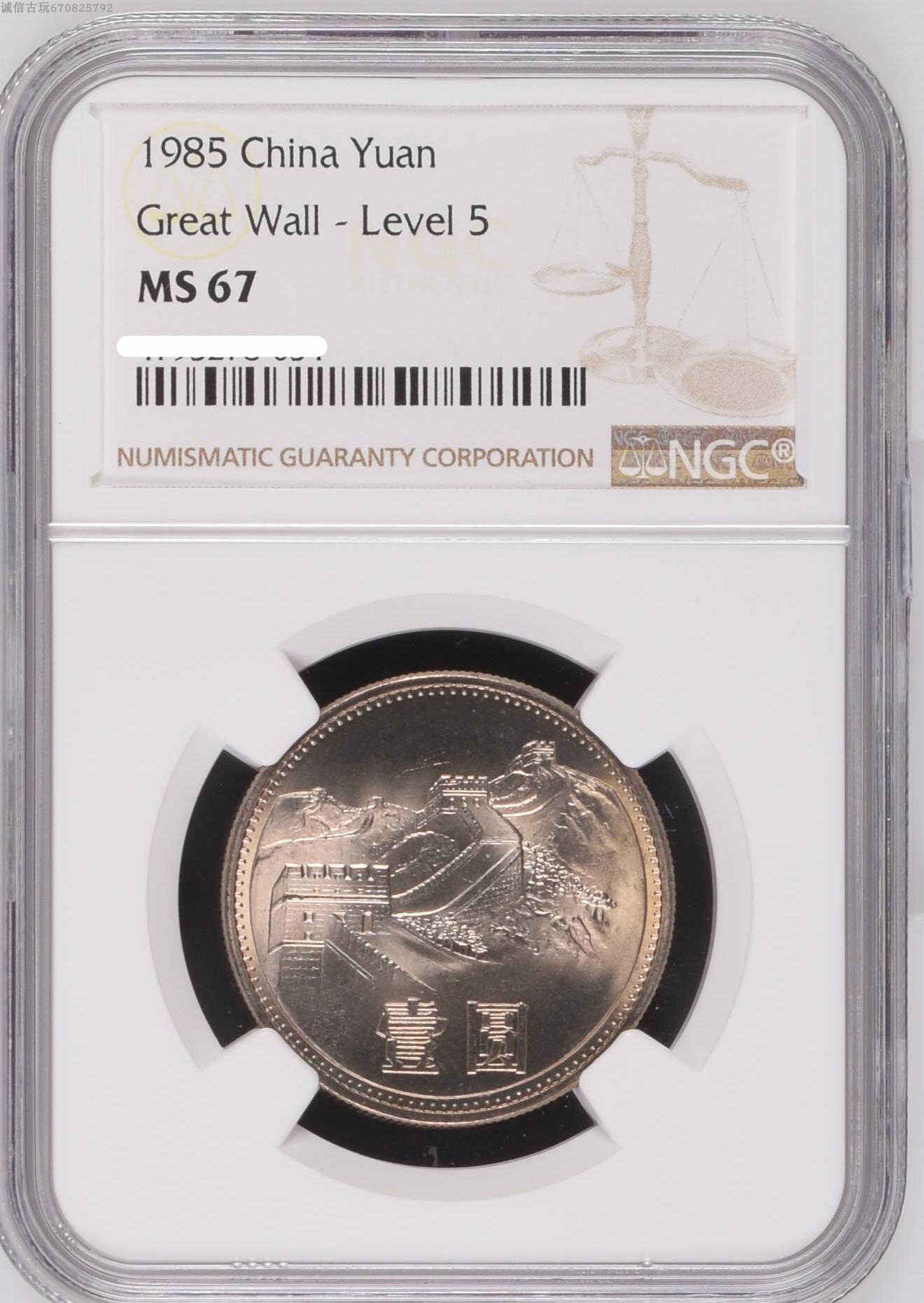 1985年1元長城幣硬*幣 紀念幣NGC評級幣MS67分 LEVEL5英文標