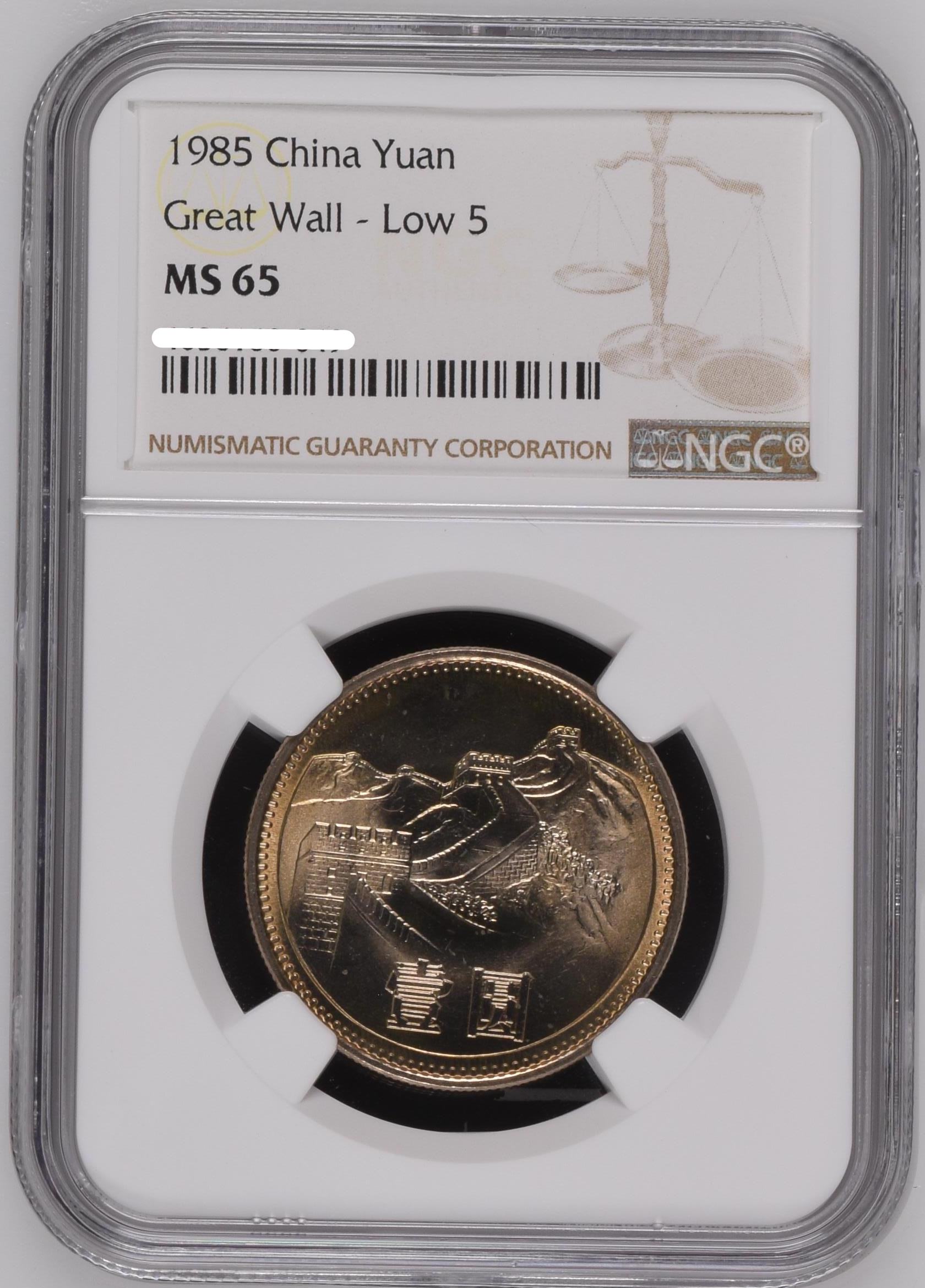 重彩 黃金五彩 1985年1元城幣硬幣 寬版英文標NGC評級幣MS65分