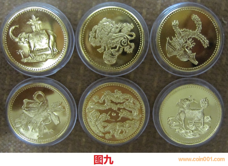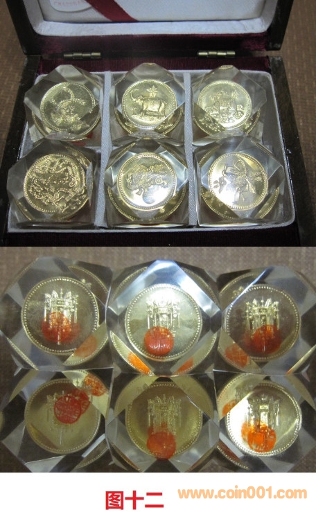 除此,90年代,上幣還做過吉祥如意水晶球,為6枚一套,水晶球中的均是不帶款的鍍金章,常見,見圖十二。