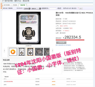 評級普通(精制)紀念幣交易