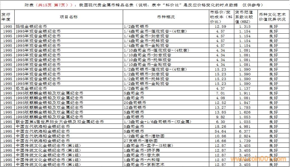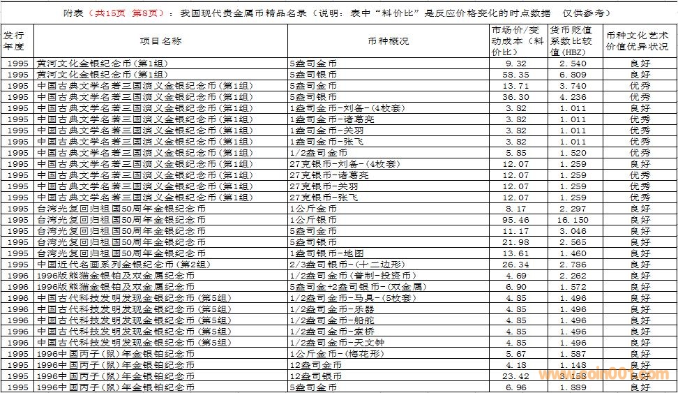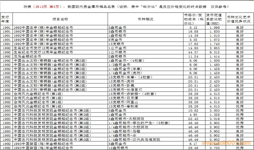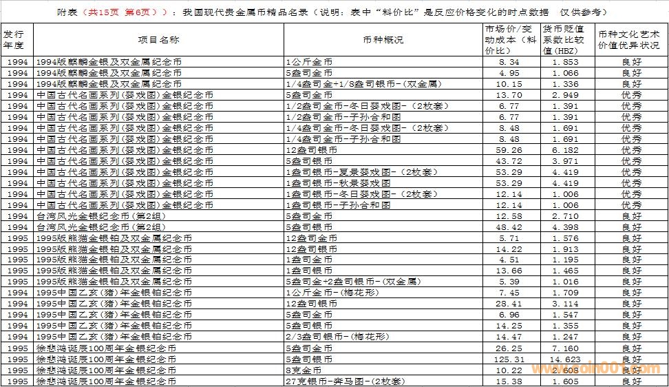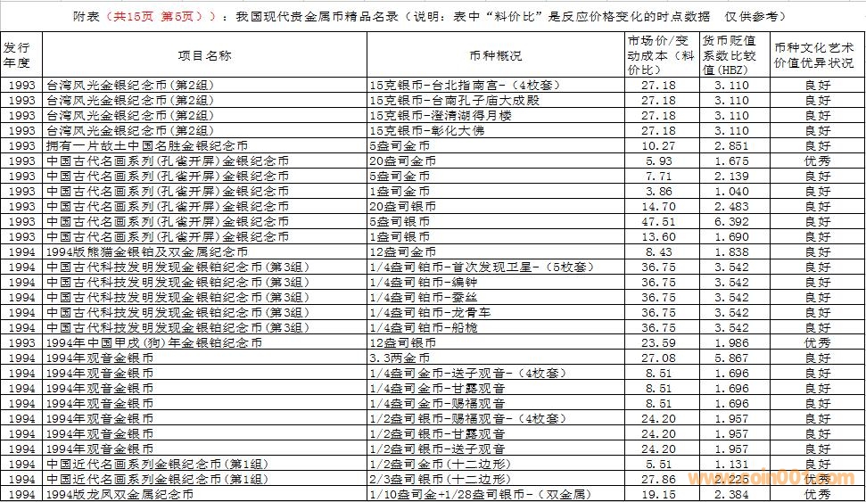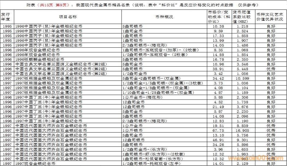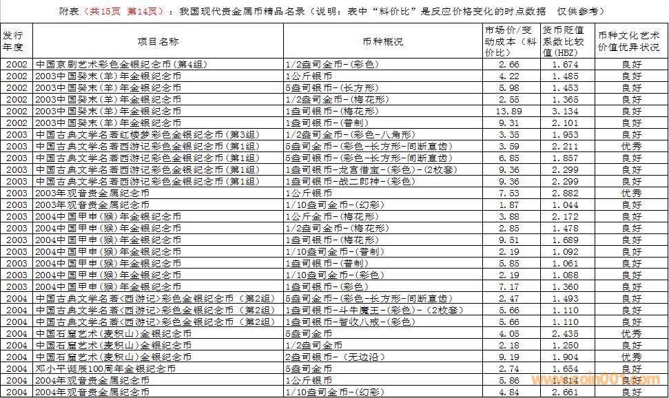 在這里需要特別說明的是,由于幣種的文化藝術(shù)價值和投資價值都是動態(tài)的。特別是由于受到市場交易價格和貨幣貶值速度等多種因素的共同影響,投資價值的變化規(guī)律比較復(fù)雜,具有不確定性。人們不能用過去的投資價值代替現(xiàn)在的投資價值,也不能用現(xiàn)在的投資價值反推今后的投資價值。因此附表中展示的幣種僅僅反應(yīng)目前的狀況,雖然具有一定的參考價值,但今后不同幣種的變化方向值得密切關(guān)注。