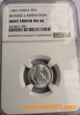 1、出1983年1分NGC MS66 評級錯幣一枚(開片)