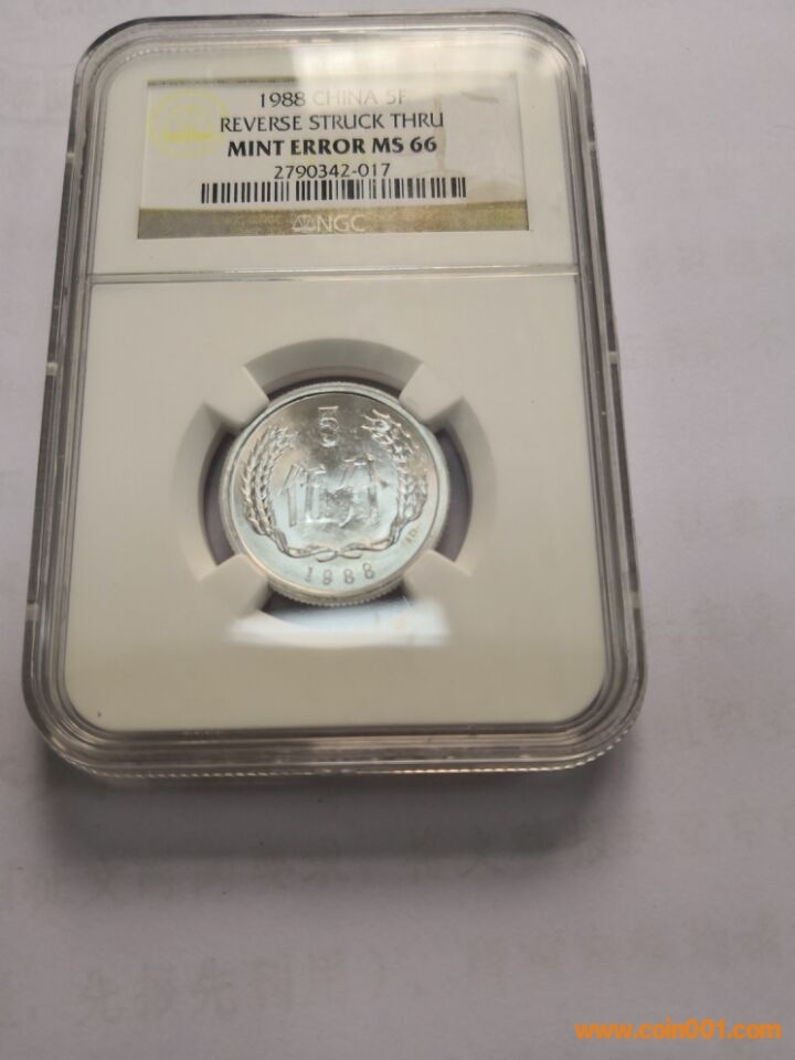 3、出1988年5分NGC MS66 評級錯幣一枚(幣面凹凸)