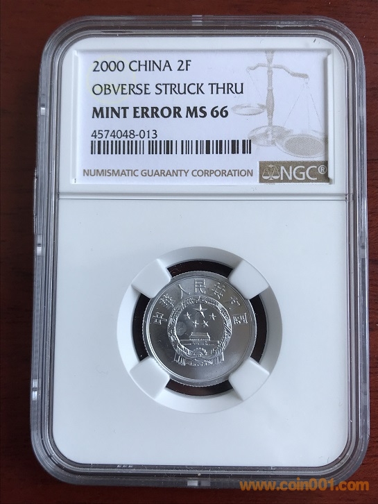 4、出2000年2分NGC MS66 評級錯幣一枚,未公開發(fā)行流通(天坑)。