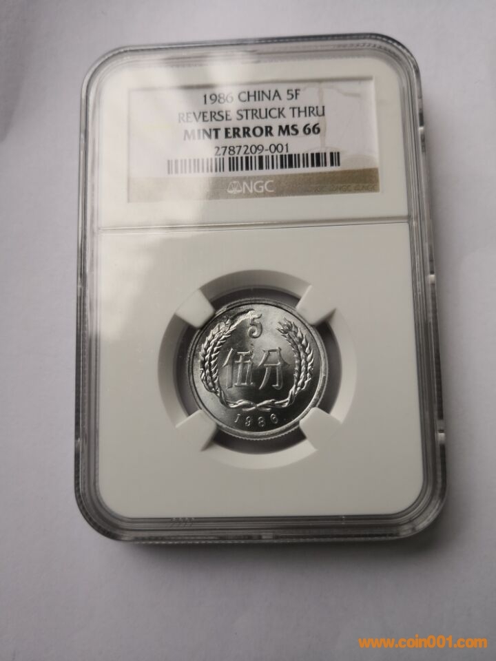2、出1986年5分NGC MS66 評級錯幣一枚(天坑)
