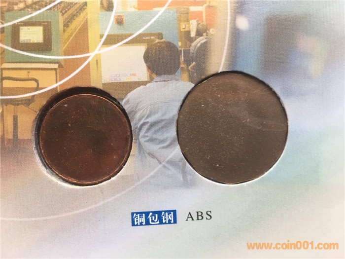 2)對比幣:所展示的雙金屬硬幣為2000年新世紀(jì)流通紀(jì)念幣;銅合金硬幣為2001年老三花梅花五角硬幣。