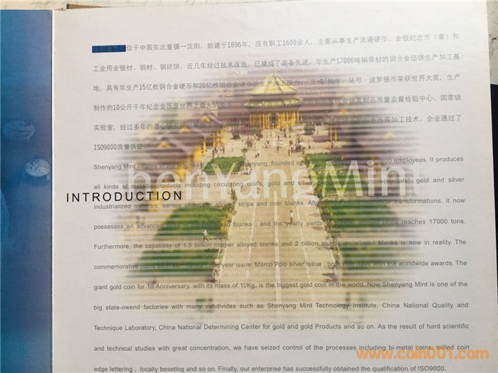 4)第16頁印有沈陽造幣廠的中英文簡介,頁底面為沈陽名勝沈陽故宮。