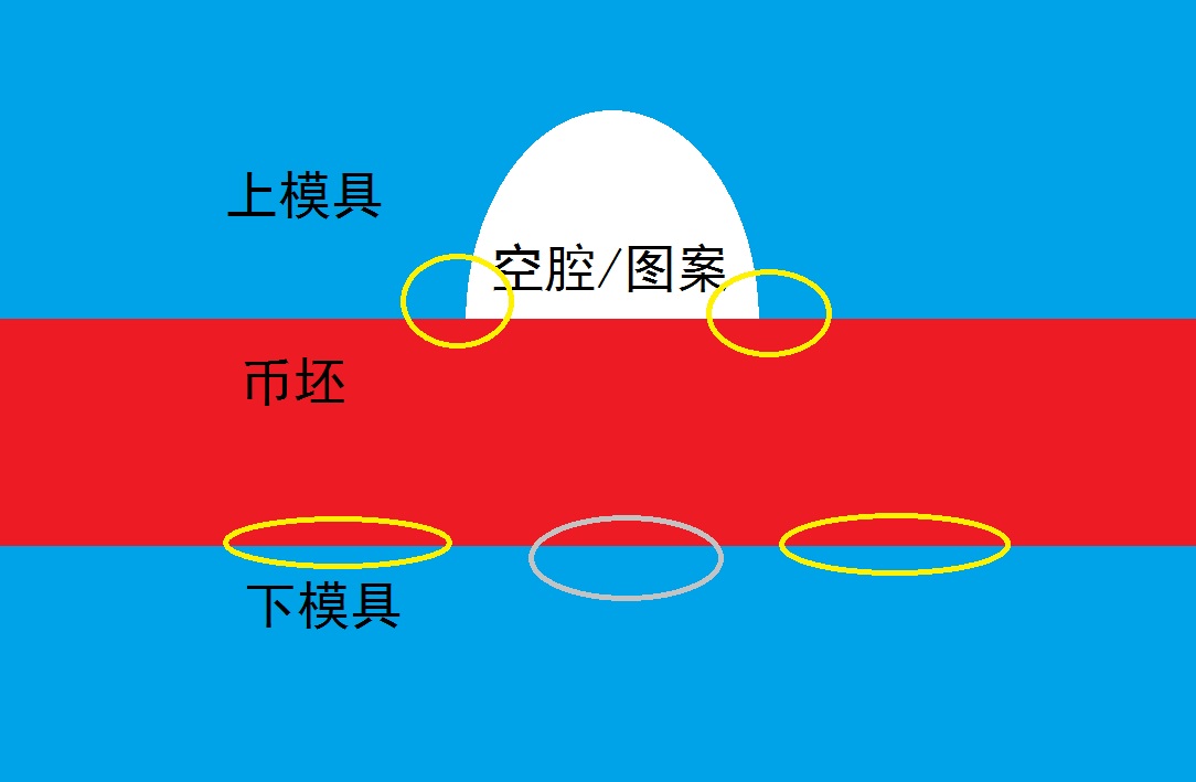 引用 引用第26樓131大雙齒錯于2019-08-19 14:49發表的 :就作算是幣模第一次壓印,我在21樓描述的過程同樣發生,此時幣模完全沒有損傷,也會同樣產生金屬流動的痕跡,很多初期幣模表面狀態完好無損壓印出來的類精制硬幣,國徽對應的內外側有透打痕跡,兩條模糊痕跡中間仍然是完好鏡面狀態,帶透打痕跡的精制幣就可以清楚的看到。