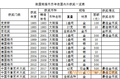 我國(guó)從1979年開(kāi)始發(fā)行現(xiàn)代貴金屬幣,其中的普制熊貓金幣從1982年開(kāi)始發(fā)行后立即引起國(guó)外錢幣屆的極大關(guān)注。繼1982年壬戌(狗)年生肖紀(jì)念銀幣獲得1984年世界硬幣大獎(jiǎng)的“最佳銀幣獎(jiǎng)” 后,1983年版的熊貓金幣和銀幣就在第二年連續(xù)分別獲得1985年世界硬幣大獎(jiǎng)的“最佳金幣獎(jiǎng)”和“最佳銀幣獎(jiǎng)”。這足以征明在我國(guó)現(xiàn)代貴金屬幣的發(fā)行初期,熊貓幣已經(jīng)獲得國(guó)際錢幣屆的普遍認(rèn)可。