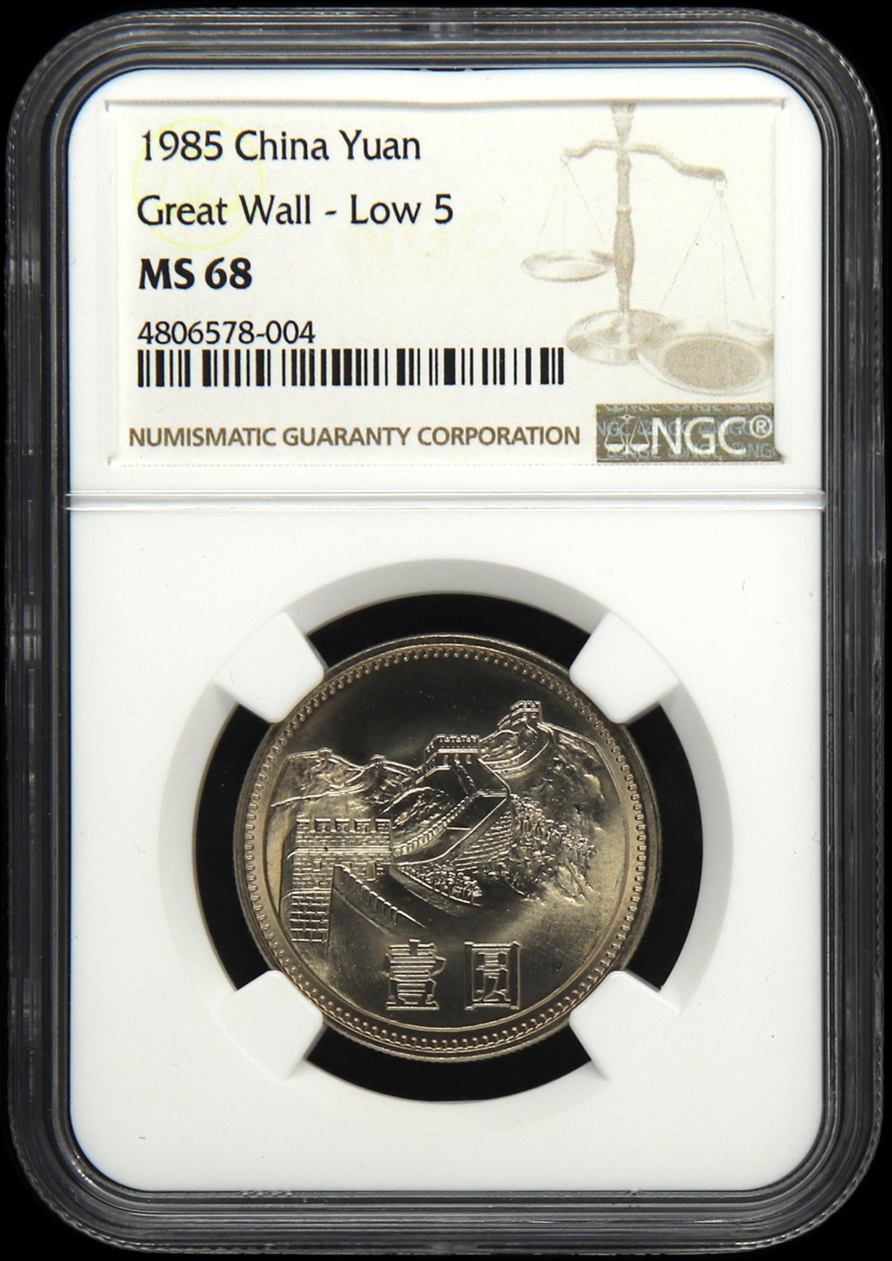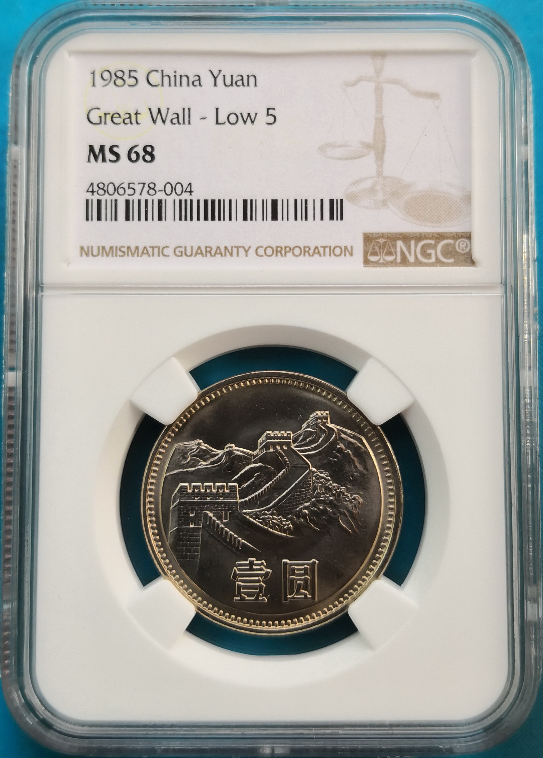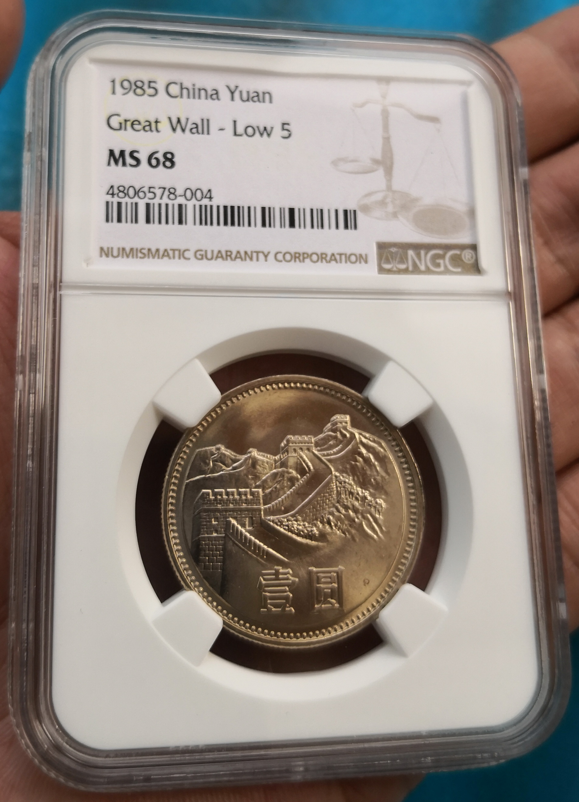2、帶這個標記的寬版851幣胚、鑄造質量要好于大部分其他寬版,無論是視覺上還是評分上。視覺上整體顏色偏深,底板平整度較好,看起來比較“端莊”,特別是長城這一面。手上66分較少,沒有發現。67分里有少量,比例較低。67綠標里占一半以上(綠標數量不多,有直接購買的,有自己送再評級評的)。手里有較多68的,可以比較下。