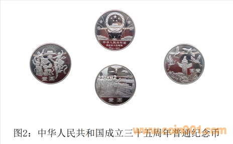????????為與國外發行慣例接軌,豐富國內收藏市場,服務發展錢幣文化,隨著成功發行“中華人民共和國成立三十周年紀念幣”,1984年央行再次抓住慶祝中華人民共和國成立35周年的契機,首次發行了“中華人民共和國成立三十五周年普通紀念幣”1套3枚。從發行這套普通紀念幣開始到2018年,我國先后發行了85個普通紀念幣金屬幣項目,其中包括113個幣種,總數量50.20億枚。發行“中華人民共和國成立三十五周年紀念幣”為人民幣大家族又增添了新的幣種門類,具有開創性意義。