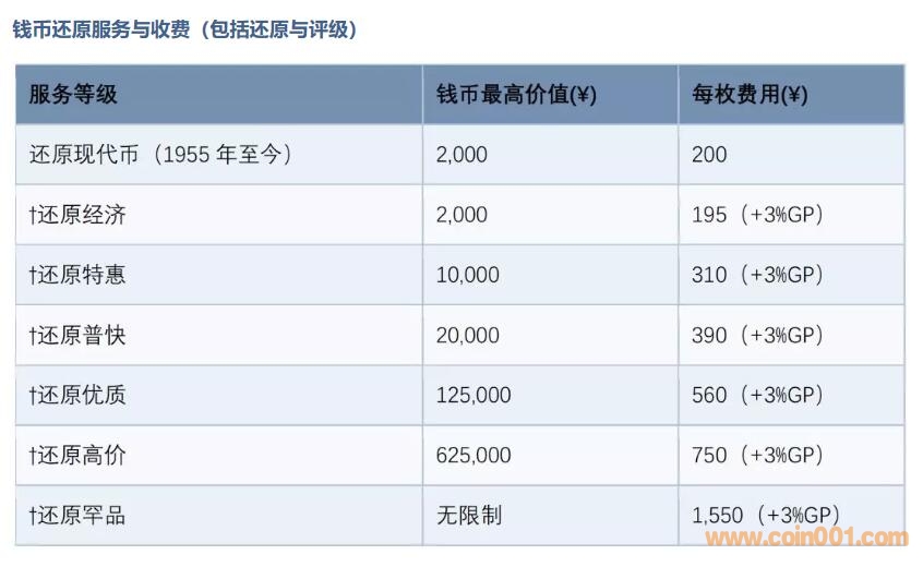 *未被還原的錢幣,須收取¥65評(píng)估費(fèi)(適用于不適合或不受益于還原服務(wù)的錢幣)及標(biāo)準(zhǔn)評(píng)級(jí)費(fèi)用。