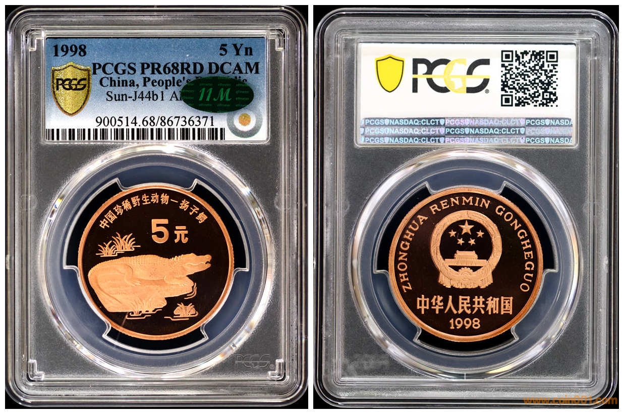 動物系列紫銅合金材質,感覺其工藝存在一定差別,金絲猴的精制程度遠高于其它幾個品種,但是其裝幀方式較差,卡冊中的塑料套僅2邊密封,另外2邊空氣比較容易進入,導致氧化較深,影響了整體分數。特別說明的是本次原狀態送評的鱷魚,是我所見最好的精制鱷魚,分數也表明了一切。