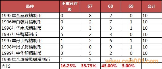 這是網站第二份原狀態評級的報告,本次網站原狀態送評包含了賀歲系列、野生動物系列、人物系列、環保系列、世博精制幣等。涵蓋了鋼芯鍍鎳、黃銅合金、紫銅合金多鐘材質,整體數據在某些方面具有一定可參考性,分享給大家,以便大家對于后期精制幣的原狀態有更深的了解。
