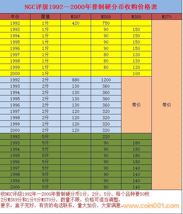 收NGC評級1992年—2000年 ..